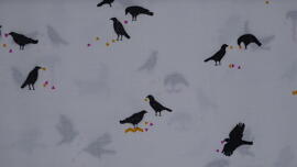 tissu en coton, Wishwell Totally Twilight by Linda Fitch (Corbeaux sur fond gris foncé)