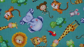 tissu coton, jungle Paradise (jeunes animaux sur vert)