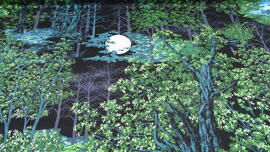 tissu en coton, In the Moonlight (Forêt de feuillus avec lune)