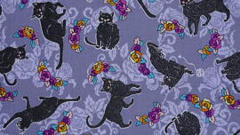 tissu en coton, Wishwell Totally Twilight by Linda Fitch (chats sur fond violet)