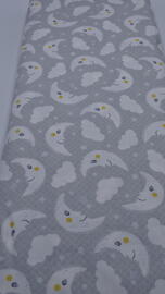 tissu coton, Baby's Adventure by Arrolyn Weiderhold (Lune et nuages sur fond gris)