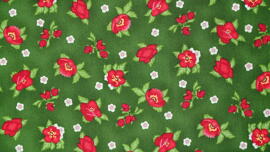 tissu en coton, Scarlet's Garden by Debbie Beaves (fleurs rouges sur fond vert)