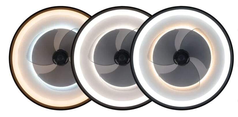 Trio plafonnier LED avec ventilateur Ø 50 x 15 cm blanc chaud - blanc froid noir mat à intensité réglable