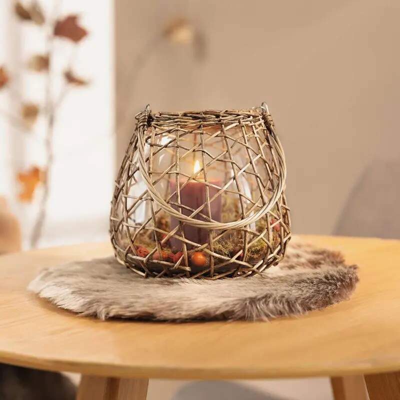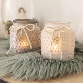 Lanterne pour bougies chauffe-plat Glücksmoment - métal gris, crème ou taupe - 10 cm 168