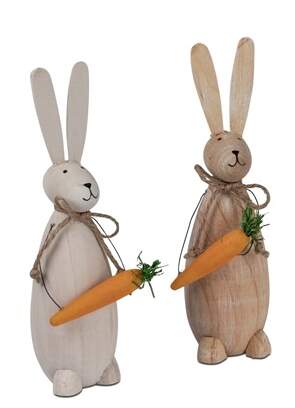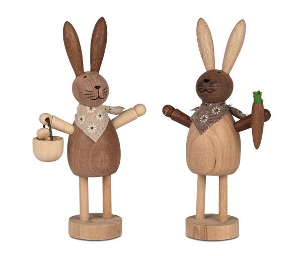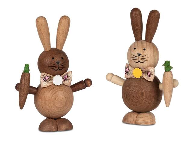 Lapin de Pâques en bois avec carotte ou panier - bois de hêtre massif - 19 cm - 224