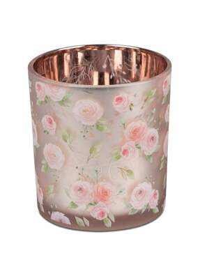 Lanterne en verre pour bougie chauffe-plat - rose avec motif de roses, 8 cm, réf. 222