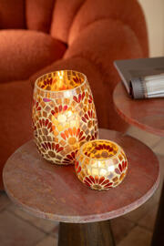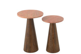 Ensemble de 2 tables d'appoint rondes en marbre Terracotta et brun foncé (64155)