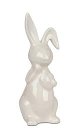 Lapin de Pâques en céramique émaillée blanche, tenant un cœur dans la main, 30 cm, 225