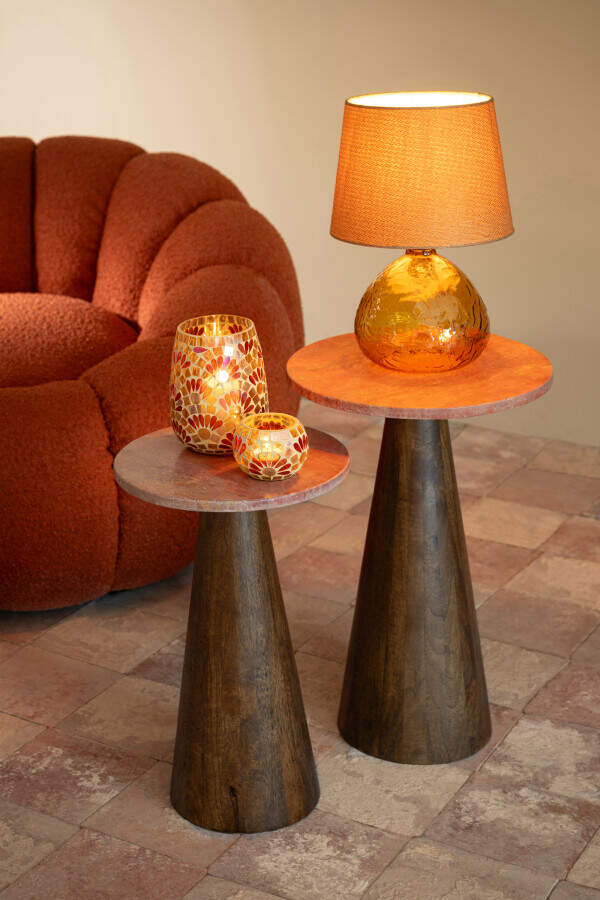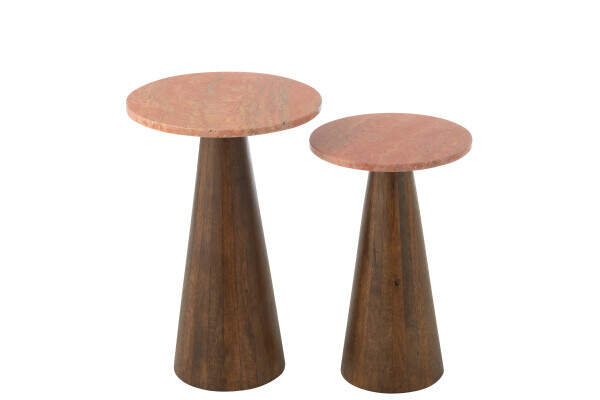 Ensemble de 2 tables d'appoint rondes en marbre Terracotta / Marron foncé 64154