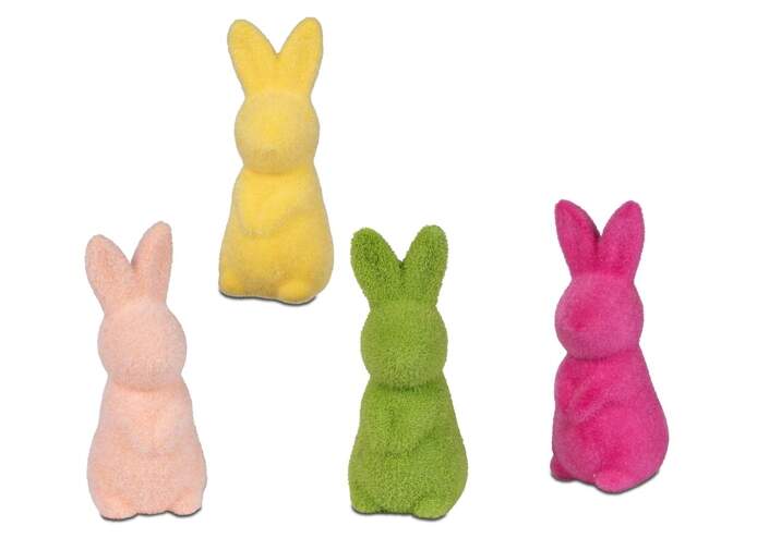 Lapins de Pâques flockés en plusieurs couleurs - à poser debout - 8 cm - 221