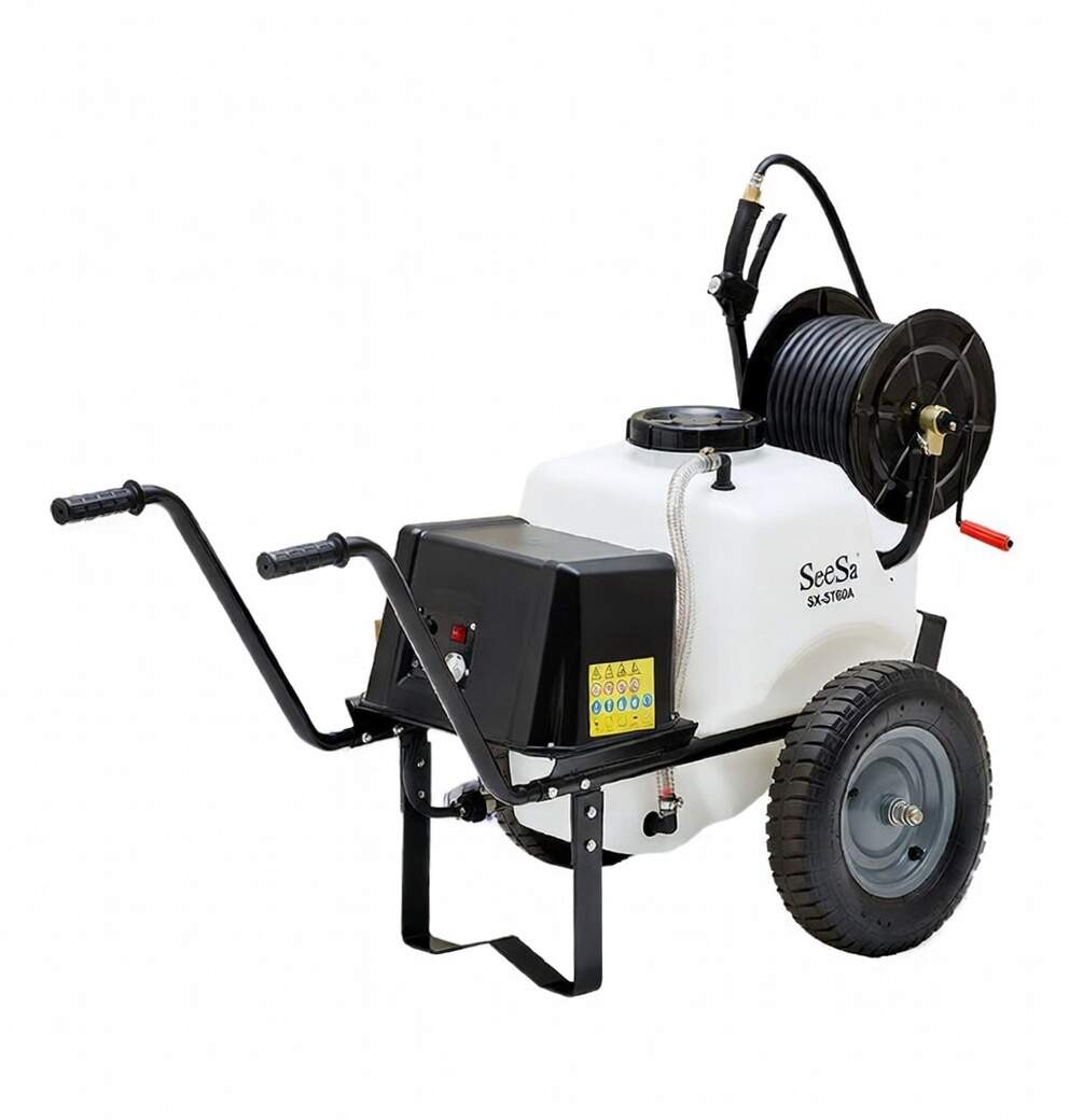 Varan Motors - SX-ST60A Pulvérisateur agricole batterie 38Ah 12V sur roues– Epandeur Cuve 60L Tuyau 30m avec enrouleur