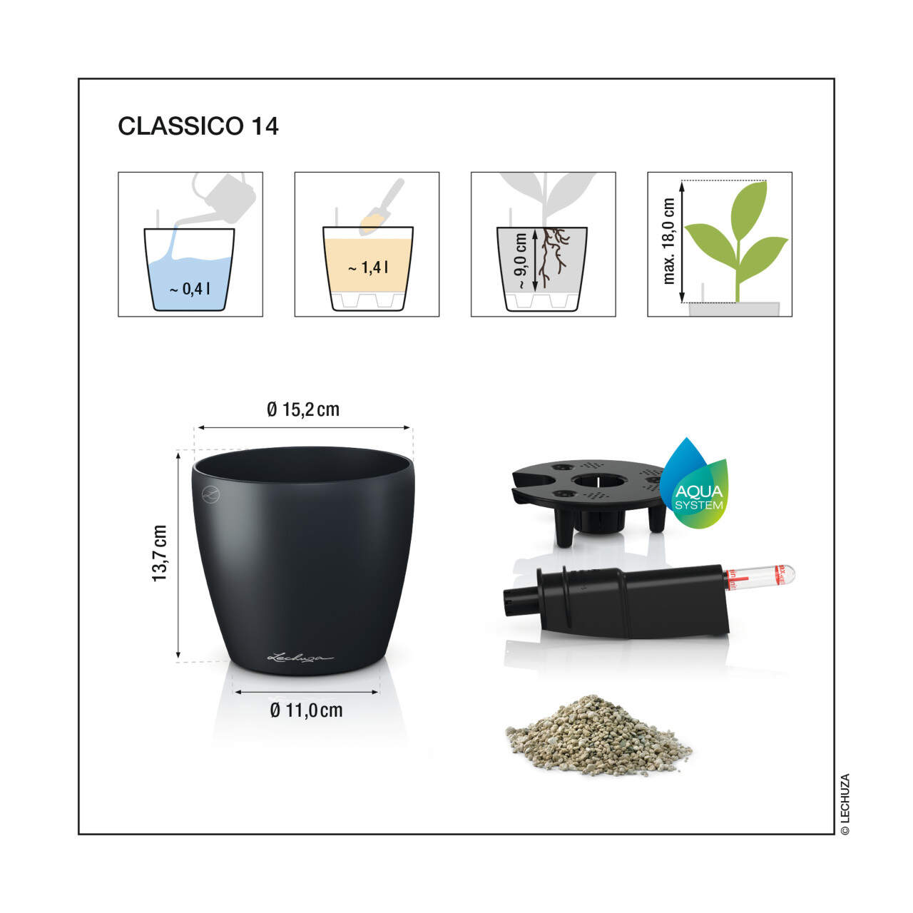 Lechuza ensemble de pots de fleurs Classico Color 14 en plastique blanc Ø 15,2 × 13,7 cm