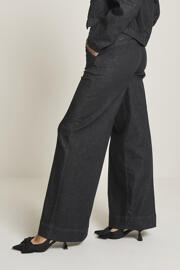 Pantalon ample en tissu avec plis pressés et jambes larges